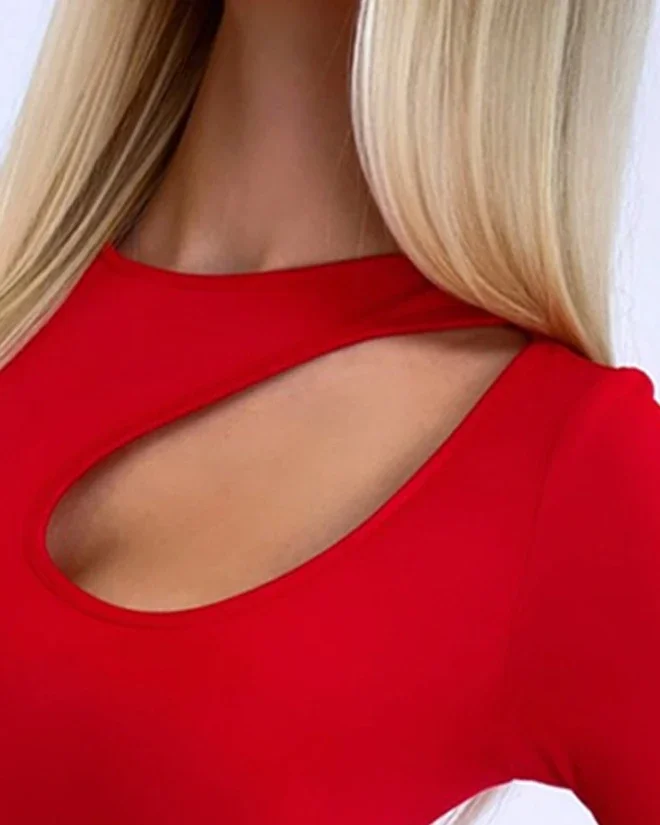 CPSYMYM Bodysuit Women Spring Hollow Out Long Sleeve Casual O-Neck Plain Skinny Daily Simple Bodysuit Y2K Tops