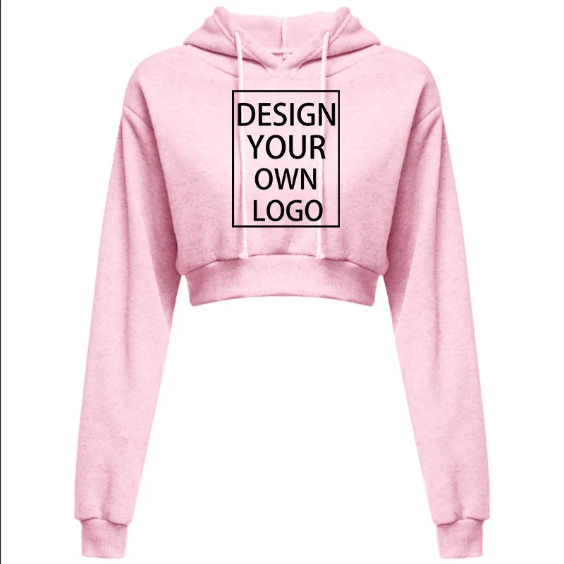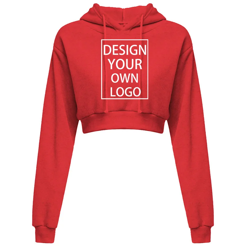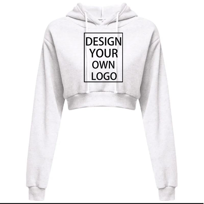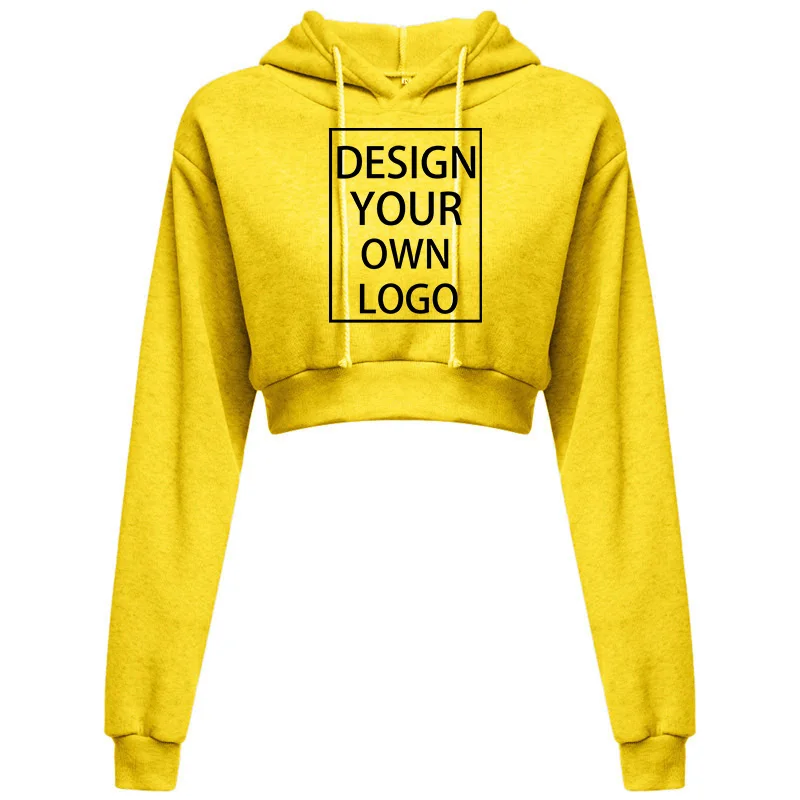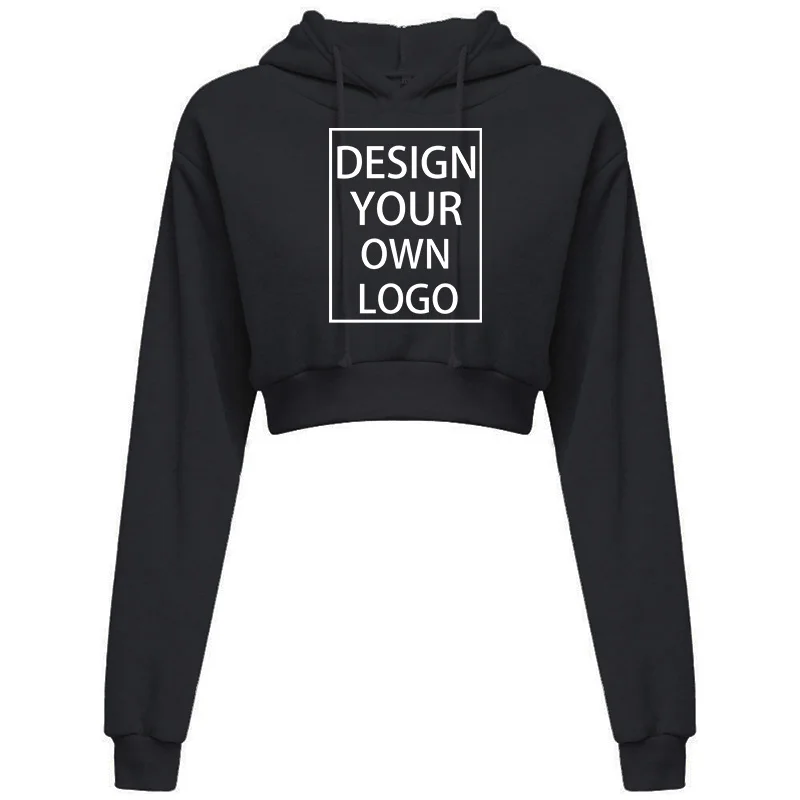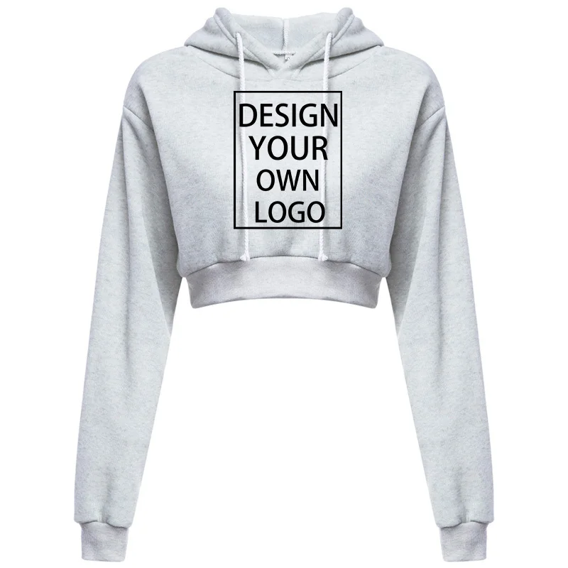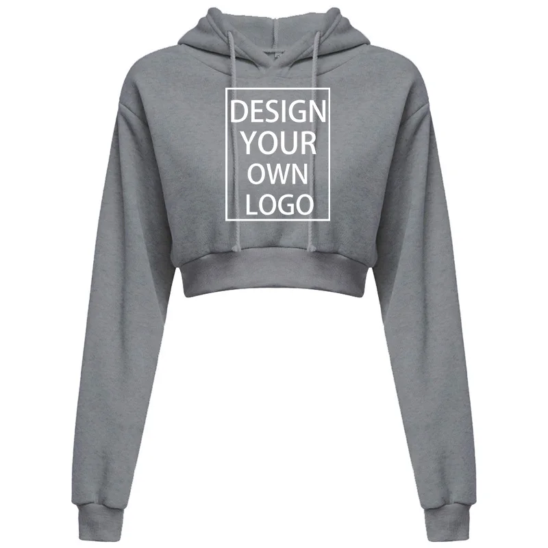 Customized Fashion Womens Sexy Casual Long Sleeve Hooded Short Sweatshirt Plain Crop Tops Pullover Hooded Sweatshirt