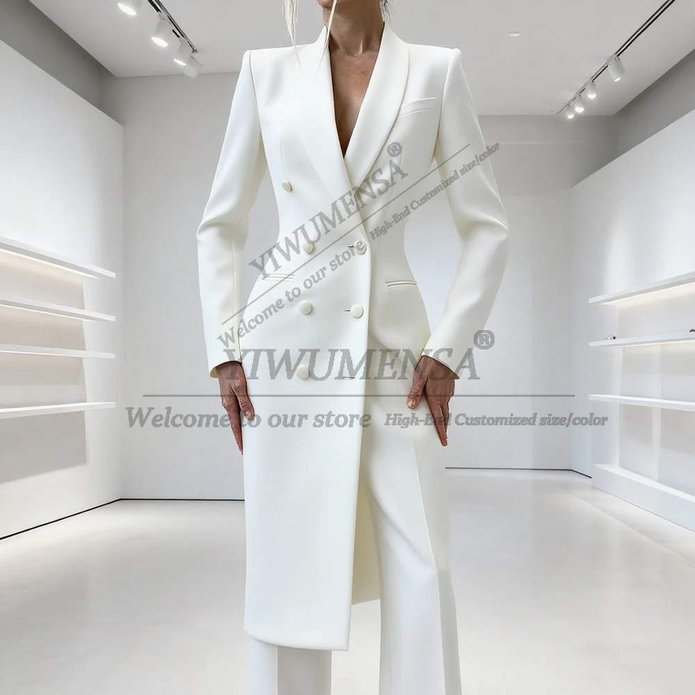 Elegant Solid Women's Suits 2 Piece Double Breasted Peak Lapel Jacket Pants Sets Fashion Prom Blazer Long Customized Lady Attire